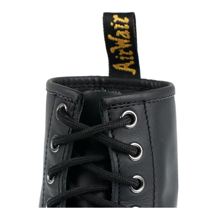 8-hole shoes by Dr. MARTENS made of genuine cowhide coated with paint. Shoes Dr. Martens thanks to their outstanding appearance, durability and tenacity, Martens have become worldwide icons in shoe industry. The inner tongue is tightly sewed to the shoe at the bottom – thanks to this, water, mud and small stones do not penetrate into the shoe. The sole is heat-sealed and sewed to the rest of the shoe, which has a positive effect on durability of the shoe. The sole is made after the model of the original Dr. shoes Martens – this air suspension in the sole has provided comfort and durability of the shoe since 1960. The sole is also resistant to oils and the tenacity of the rubber offers good mechanical resistance and anti-slip. Color: black – matt. Quality leather shoes! Shoe height approx .: 19.5 cm. Heel height approx .: 3.5 cm. Composition: genuine cowhide, color, rubber sole. There is NO metal reinforcement in the toe of the shoe.