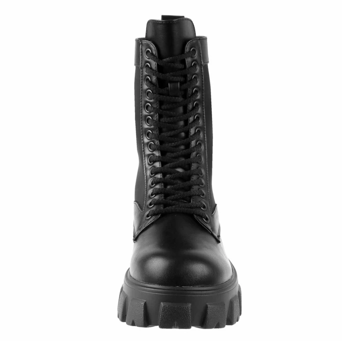 Elegant walking shoes, by KILLSTAR. Composition: polyester, polyurethane (synthetic leather), PVC – 100% VEGAN. Total height of the shoe approx .: 26cm. Heel height approx .: 5cm. Height of the sole under the toes approx .: 3,5 cm. Color: black – matt.