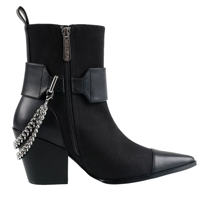 Elegant canvas women’s walking shoes, by KILLSTAR. Side zipper for easy dressing. Composition: canvas (polyester, cotton), synthetic leather (PU), PVC outsole, metal accessories – 100% VEGAN. Sole height (heel) approx .: 6.5 cm.Sole height (front) approx .: 0.5 cm.Overall height of the shoes approx .: 22 cm. Color: black – matt.