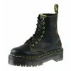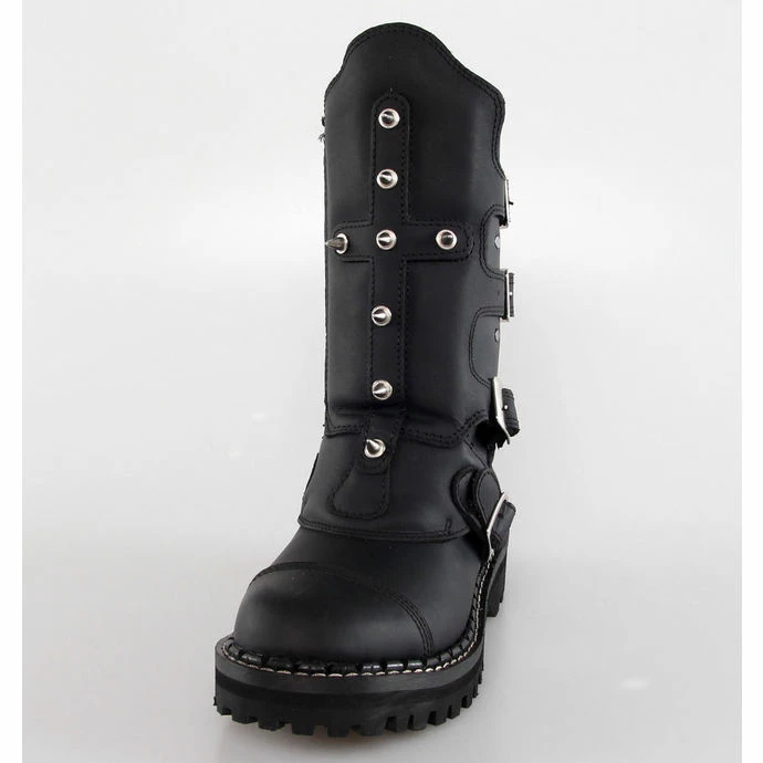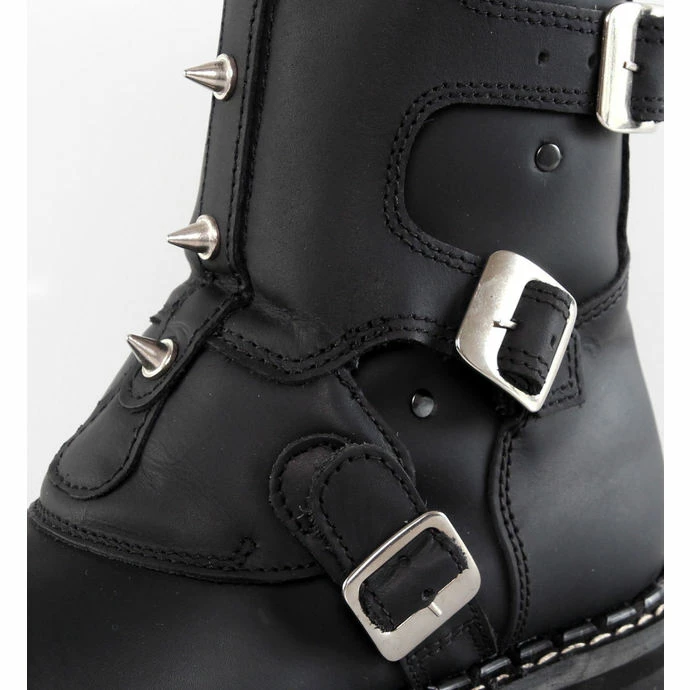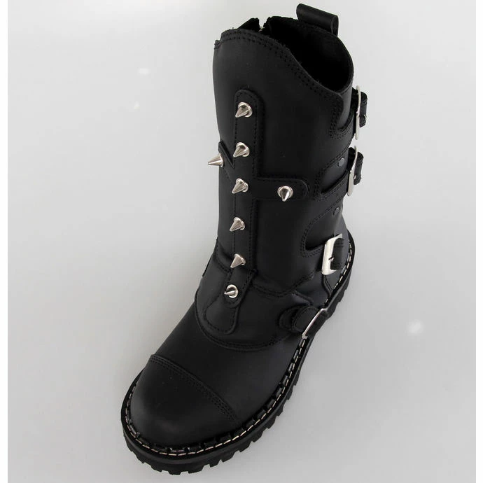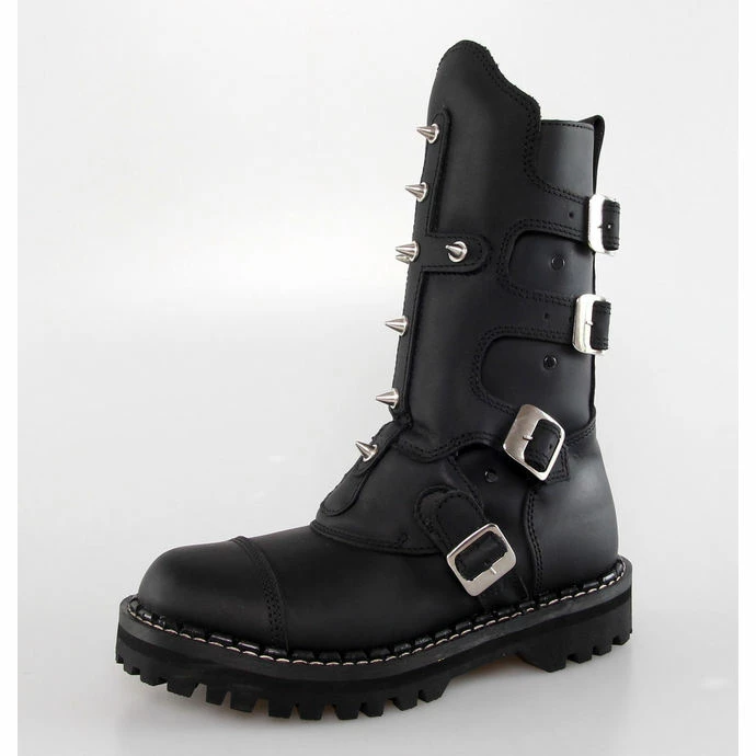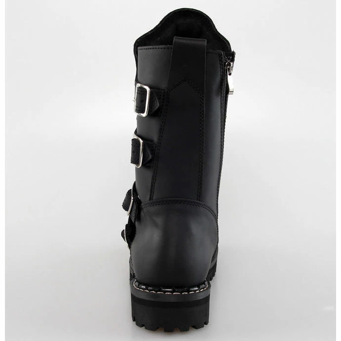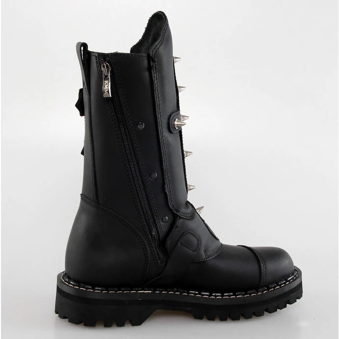 KMM shoes made of genuine leather outsole is made of high quality rubber. Fastening is done using the zipper on the inside, or four metal buckles. Colour: black (matte). Quality leather boots! Shoe height approx .: 34 cm. Height soles (measured at the heel) approx .: 4.2 cm. Material: genuine leather, synthetic leather (color), rubber sole, metal accessories. In the toe is not brace.