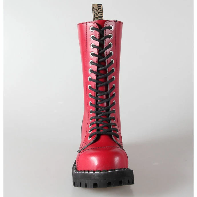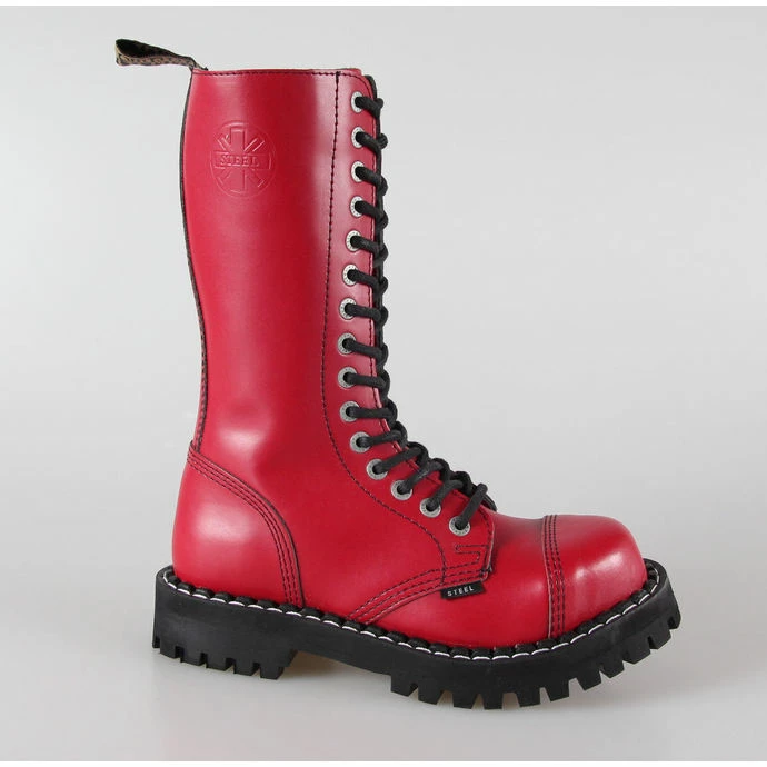 15-eyelet boots “glade” brand STEEL made of genuine leather, coated leather with solid technical printing. High-quality leather shoes! Height soles (measured at the heel) approx.: 4cm. Composition: genuine leather, synthetic leather and metal. The toe is metal reinforcement (finger protection). Color: red, black.