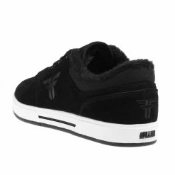 Men’s boots FALLEN. The inner collar is decorated with fur. Composition: natural suede, fabric, polyester, rubber sole. The shoe has a vulcanized construction, abrasion resistant soleand an impact foam insole for a long-term impact suspension.Color: black, white.
