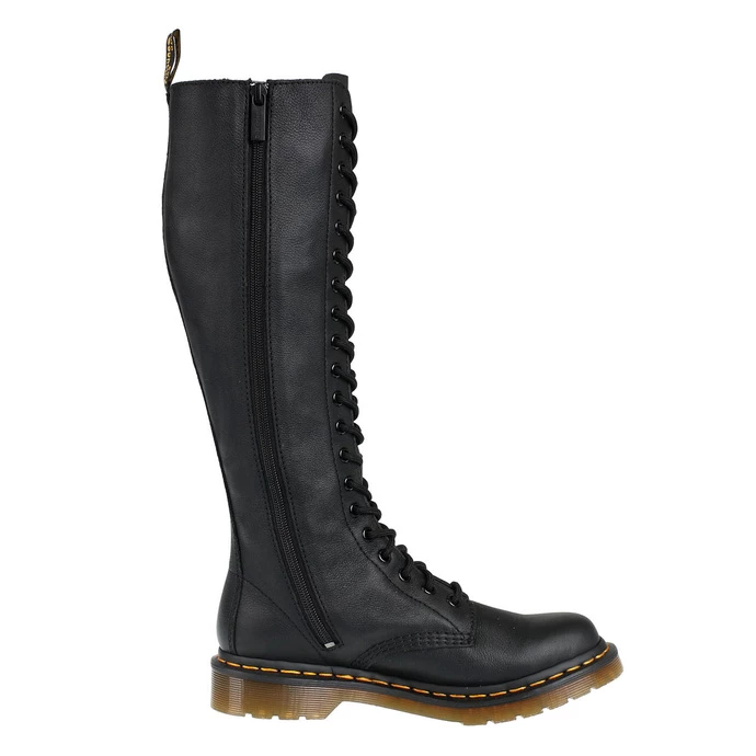 20-hole shoes by Dr. MARTENS made of genuine cowhide coated with paint in various shades. The cowhide is very soft and pliant. Shoes Dr. Martens thanks to their outstanding appearance, durability and tenacity, Martens have become worldwide icons in shoe industry. The inner tongue is tightly sewed to the shoe at the bottom – thanks to this, water, mud and small stones do not penetrate into the shoe. There is a functional zipper on the inside of the shoe for easy dressing. The sole is heat-sealed and sewed to the rest of the shoe, which has a positive effect on durability of the shoe. The sole is made after the model of the original Dr. shoes Martens – this air suspension in the sole has provided comfort and durability of the shoe since 1960. The sole is also resistant to oils and the tenacity of the rubber offers good mechanical resistance and anti-slip. Color: black – matte. Quality leather boots! Shoe height approx .: 41cm. Heel height approx .: 3.5 cm. Composition: genuine cowhide, color, rubber sole. There is NO metal reinforcement in the toe of the shoe.