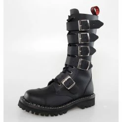 14-hole boots of the brand KMM made of genuine leather covered with solid black synthetic leather, the sole is made of high quality rubber.