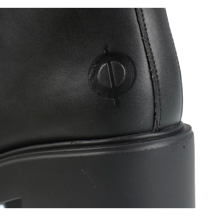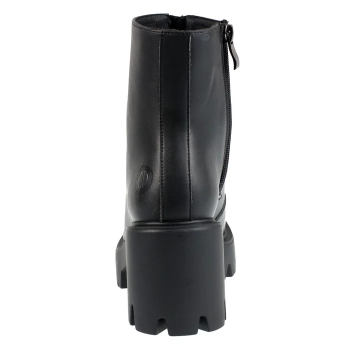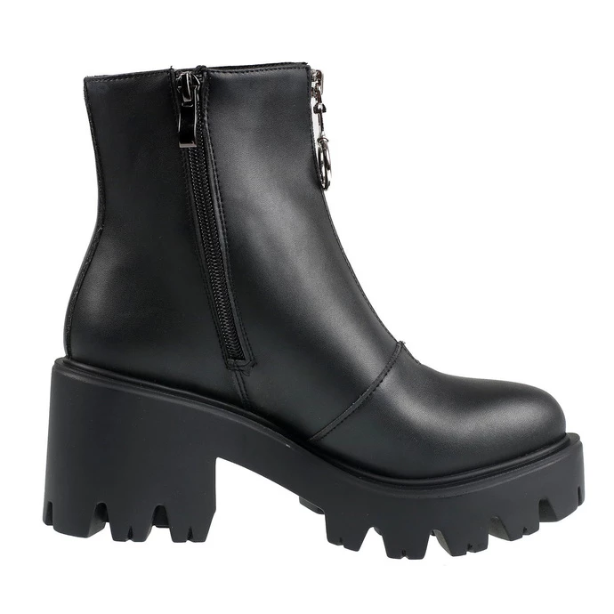Women’s comfortable “VEGAN” shoes, by ALTER CORE. There is a functional zipper on the side. The front zipper is only decorative – it is not functional. Overall height approx .: 22 cm.Outsole height (heel) approx. 7 cm.Outsole height (front) approx. 3.5 cm. Composition: synthetic leather (PU), polyester, rubber sole – 100% vegan. Color: black – matte.