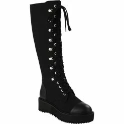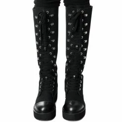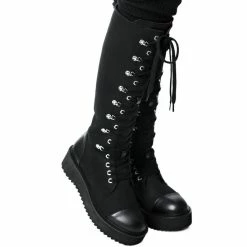 Elegant canvas Women’s walking shoes brand KILLSTAR. Back zipper for easy dressing. Composition: 80% canvas (polyester, cotton), 20% synthetic leather (PU), PVC sole, metal accessories – 100% VEGAN. Sole height (heel) approx .: 4.5 cm.Sole height (front) approx .: 3.5 cm.Overall height of the shoes approx .: 42 cm. Color: black – matt.
