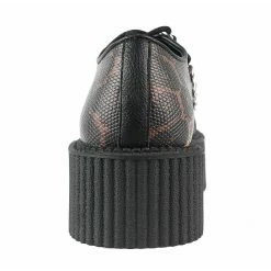 Stylish elegant women’s walking shoes, by KILLSTAR. Composition: polyester, polyurethane (synthetic leather), PVC – 100% VEGAN. Total height of the shoes approx .: 12 cm. Heel height approx .: 5cm. Height of the sole under the toes approx .: 4cm. Color: black with print – matt.